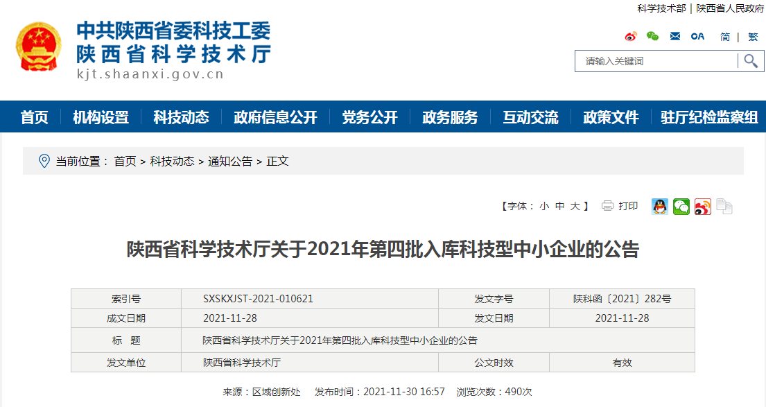 根据《科技型中小企业评价办法》和《陕西省科学技术厅关于组织开展2021年科技型中小企业评价服务工作的通知》(陕科办发〔2021〕13号)等有关规定,,,,现将陕西省2021年第三批1325家科技型中小企业入库名单和入库登记编号(详见附件)予以公告。。